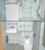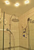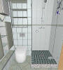Es ist immer wieder erstaunlich, welches ausgeklügelte Badambiente man auch auf der kleinsten Grundfläche realisieren kann. In einer Eigentumswohnung aus dem Jahre 1973 befindet sich dieses,gerade mal 2,94 qm kleine Bad. Und der Modernisierer hatte sich klare Ziele bei dem Umbau des Bades gesetzt. Es sollte seniorengerecht sein und mit einem niedrigen Brauseeinstieg, einer Ganzglasdusche, einem wand hängenden Bidet und WC mit einer Installationshöhe von mindestens 47 cm ausgestattet werden. Außerdem sollten eine Granit-Waschtischplatte, reichlich Stauraum, Badmöbel und ein Elektro-Badheizkörper nicht fehlen. Manfred Welzel aus Duisburg, ein Experte in Sachen Badplanung, nahm sich diesem anspruchsvollen Umbauvorhaben an. Das Bad wurde mit der Software Ambivision von M3B geplant. Dass Welzel größten Wert auf Genauigkeit legt, zeigt sich in der Planung beispielsweise an der Wand- und Fliesengestaltung. So sind Armaturen und Accessoires immer mittig im Fliesenspiegel angebracht. Granit Imperial White wurde für die Waschtischplatte ausgesucht. Boden und Bordüren wurden ebenfalls aus Granit gefertigt. Die Dusche wurde mit Glasmosaik 20x20 mm gefliest. Das Dekor ist ein Unikat und wurde von kreativen Mitarbeitern des Kunst- hauses Tebrake, Bocholt – nach Vorlage der Wandfliesen und des Granits – eigens für dieses exklusive Minibad entworfen. Bei Bidet und WC wurde auf eine geringe Ausladung geachtet. Die Wände gestaltete man in Spachteltechnik, die Decke wurde abgehängt und mit einem Sternenhimmel versehen. Im Installationssockel wurde ein Strahler eingebaut. Die Granit-Waschtisch und –Abdeckplatten passte die Fa. Marmor Berendonk, Duisburg, millimetergenau an. Damit sich die Türen über dem WC öffnen lassen, ließ man den Badmöbeln 50 cm Spielraum zum Boden.